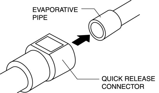 - Insert the evaporative pipe straight to the end of the quick release connector.