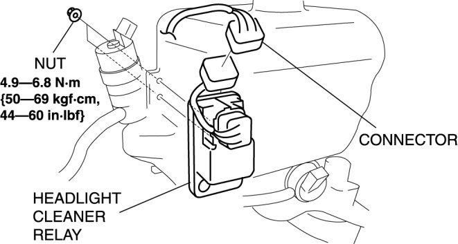 HEADLIGHT CLEANER RELAY REMOVAL/INSTALLATION
