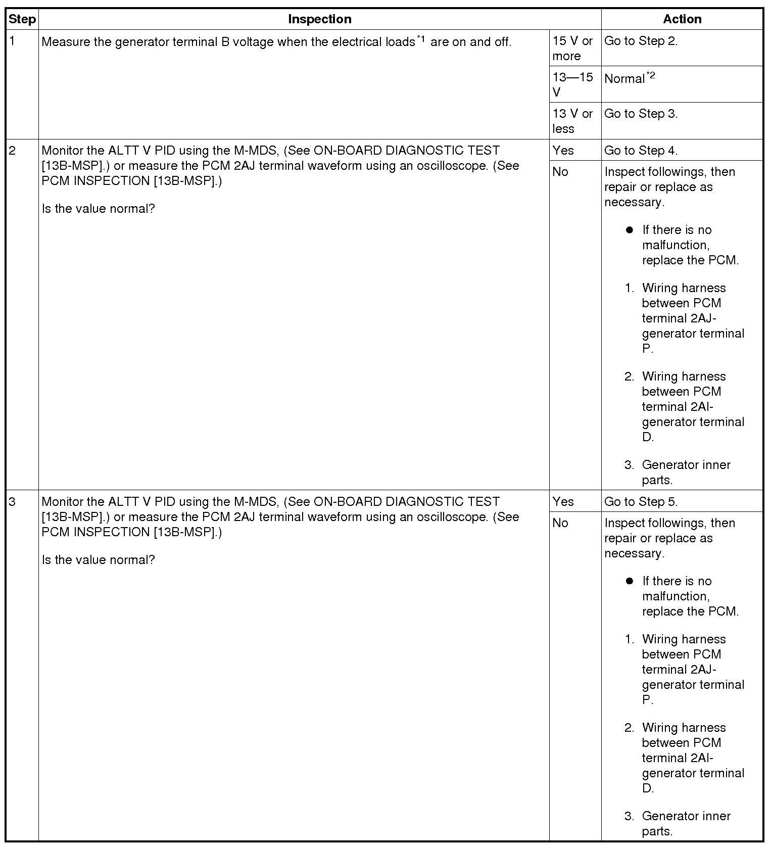 - If the generator warning light does not go out, perform the DTC inspection, then perform troubleshooting according to the corresponding diagnostic procedure. On-Board Diagnostic Test DTC Table