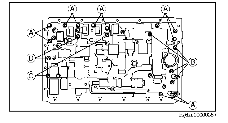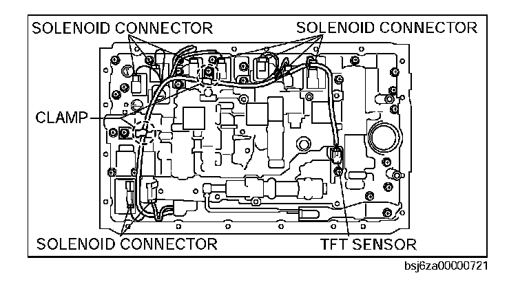 Caution: When installing the control valve body component, route the wiring harness correctly to the separate plate depression inside the control valve body component shown in the figure.