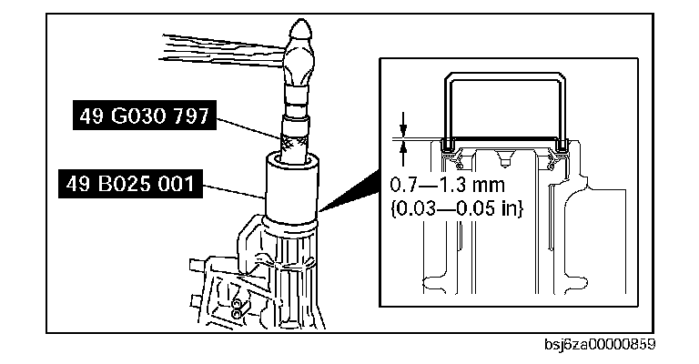 119. Assemble a new oil seal to the extension housing in the position shown in the figure using the SST and a hammer.