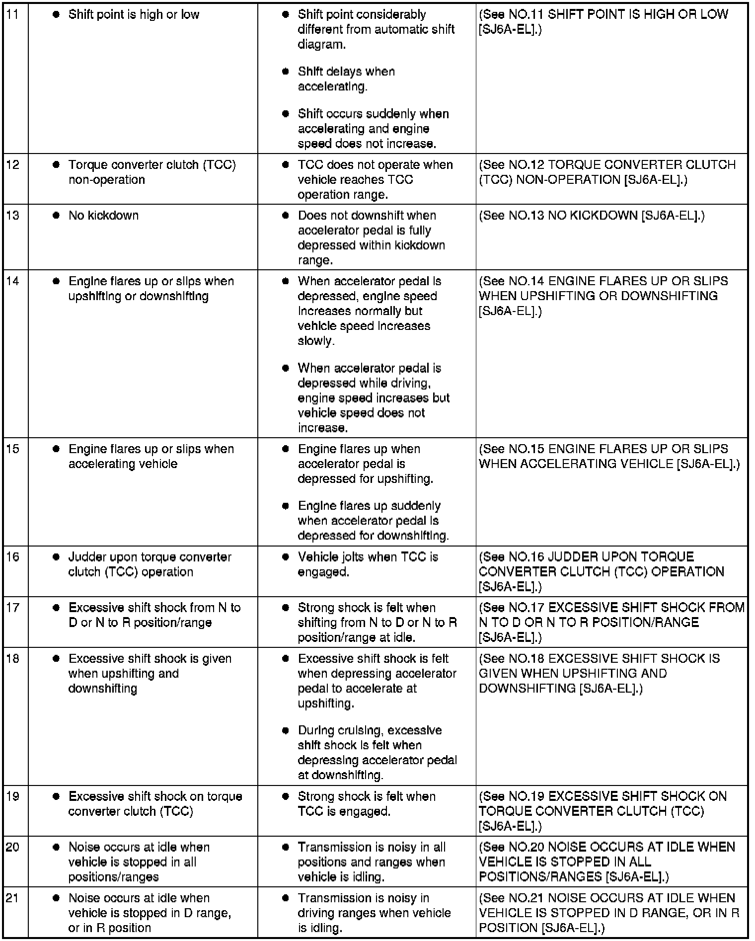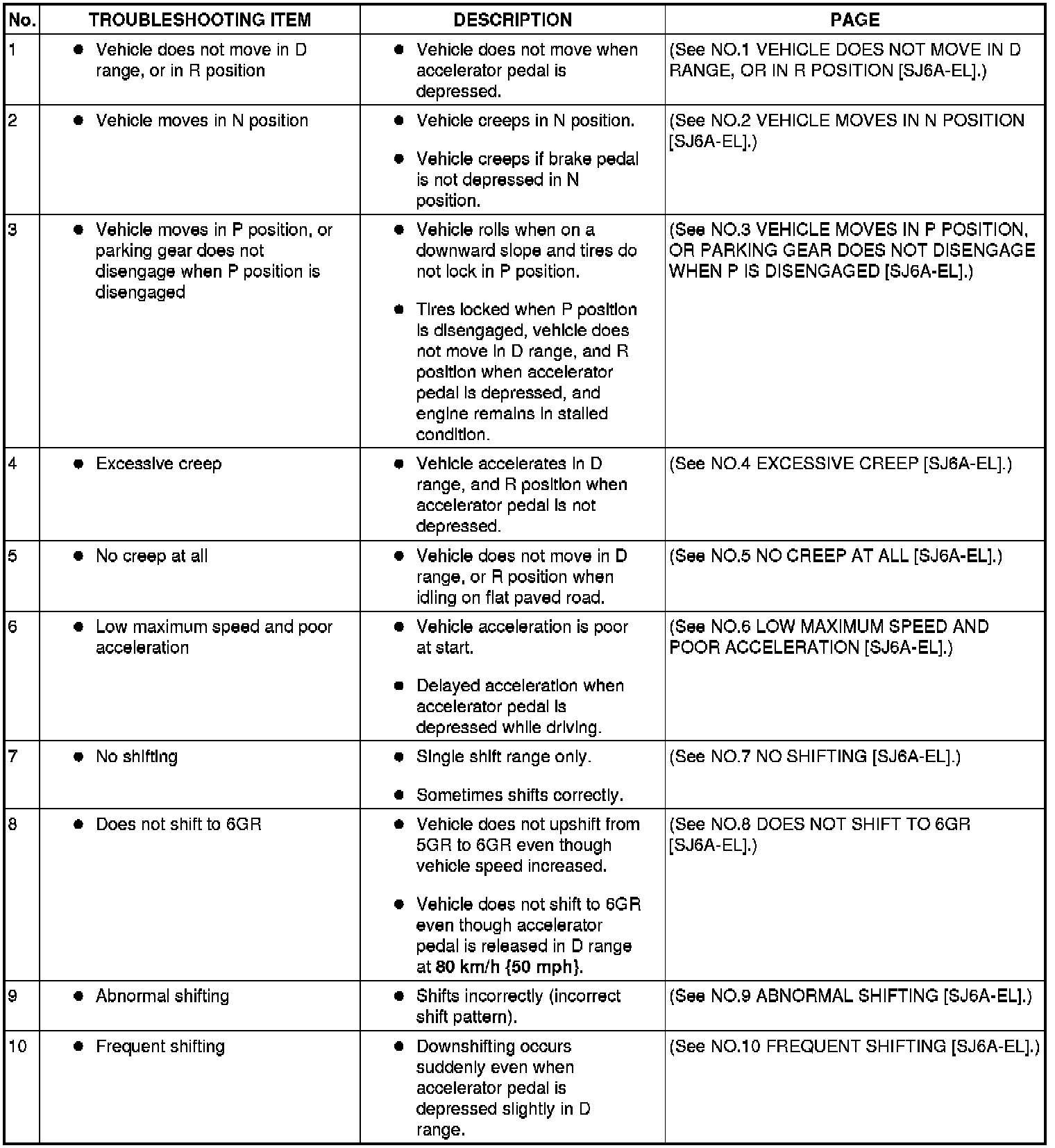 SYMPTOM TROUBLESHOOTING ITEM TABLE [SJ6A-EL]