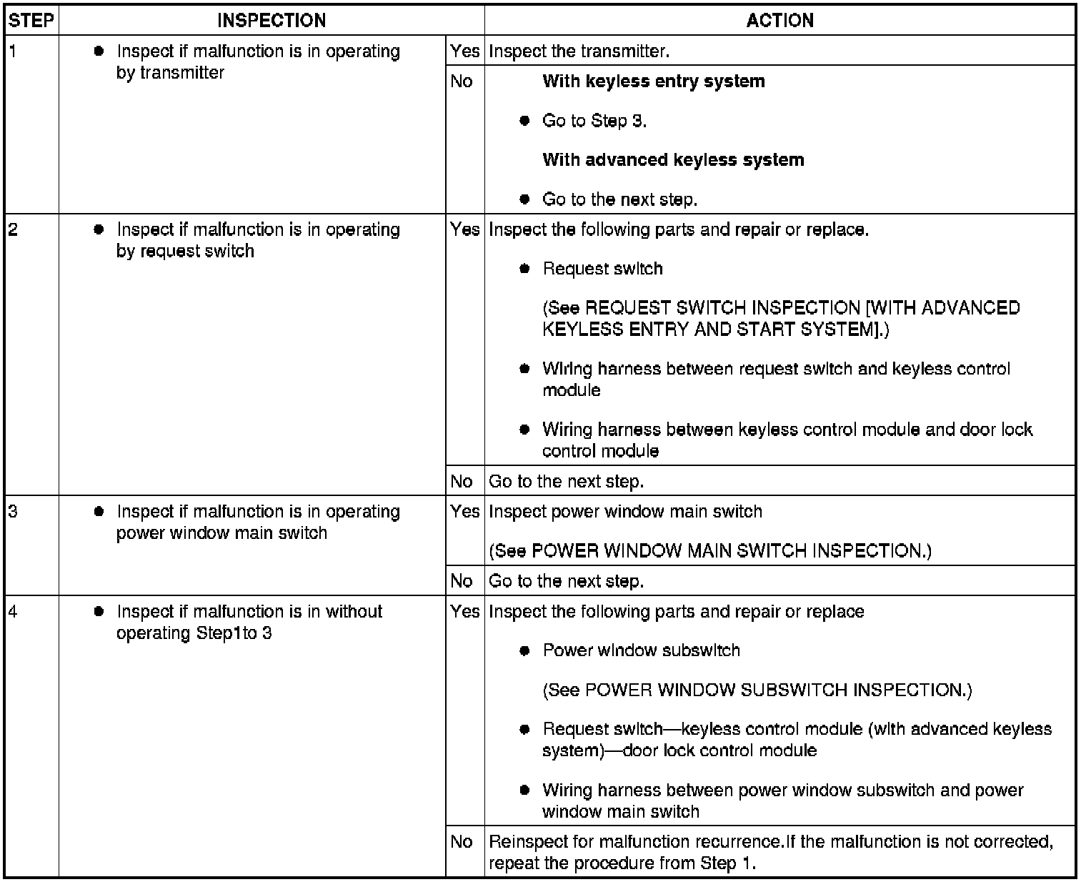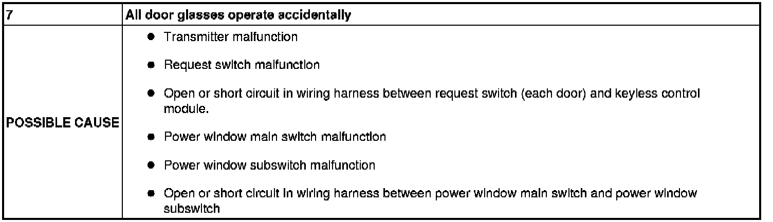 No.7 ALL DOOR GLASS OPERATE ACCIDENTALLY [EXTERIOR OPEN/CLOSE FUNCTION]