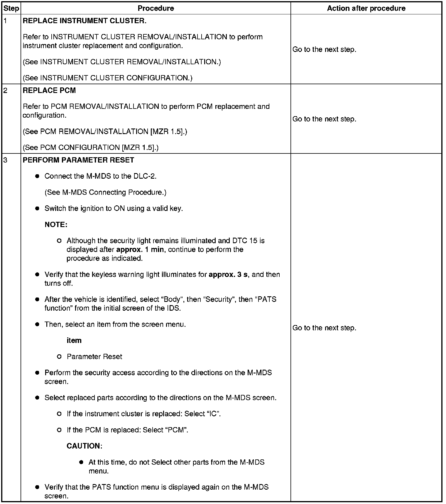 Immobilizer System-Related Parts Service and Programming Procedure Table