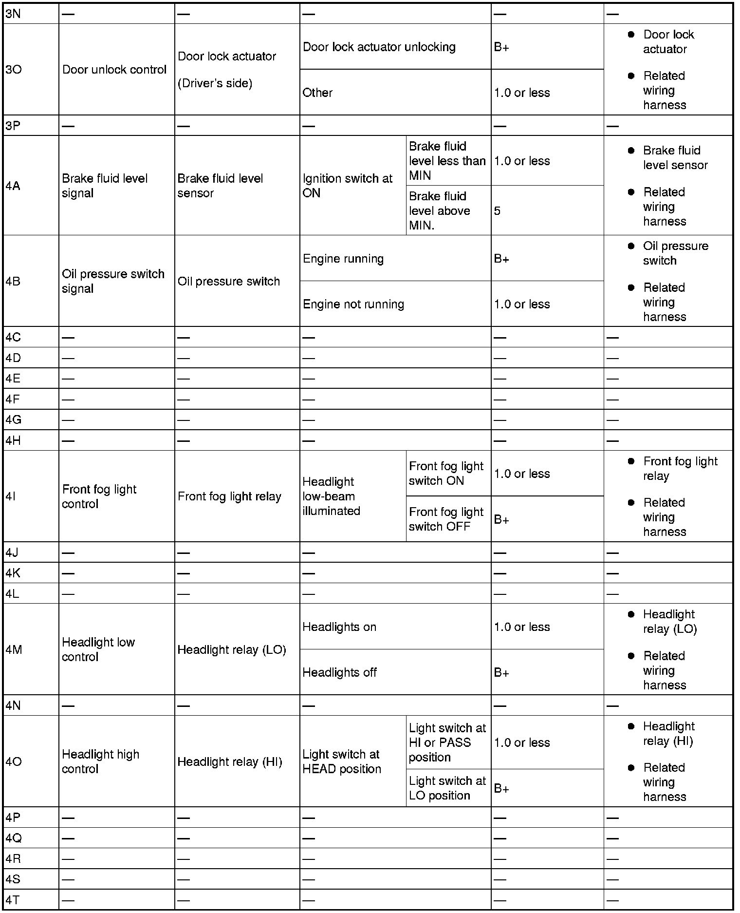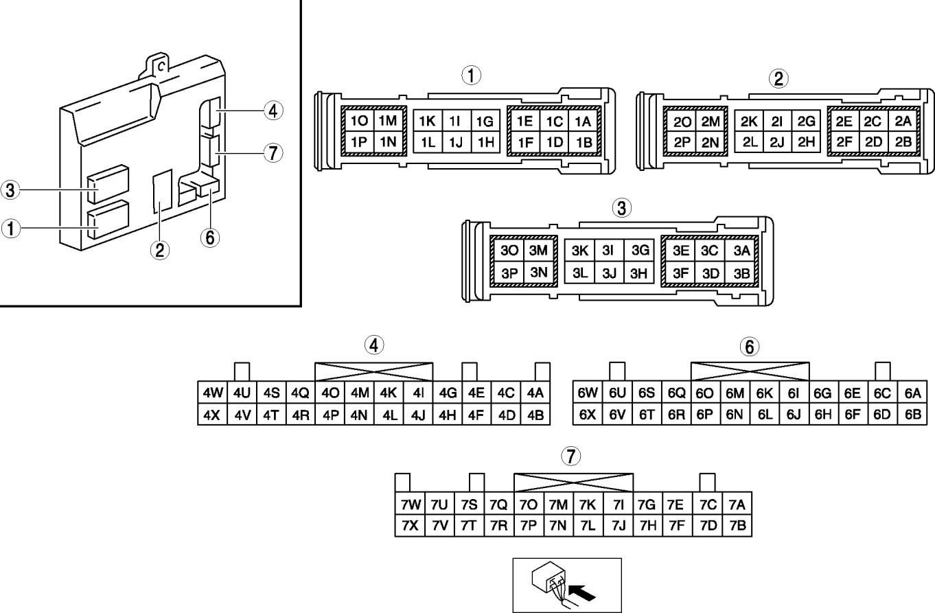 - Lock input (door lock-link switch): 7L (+) -> body ground (-)