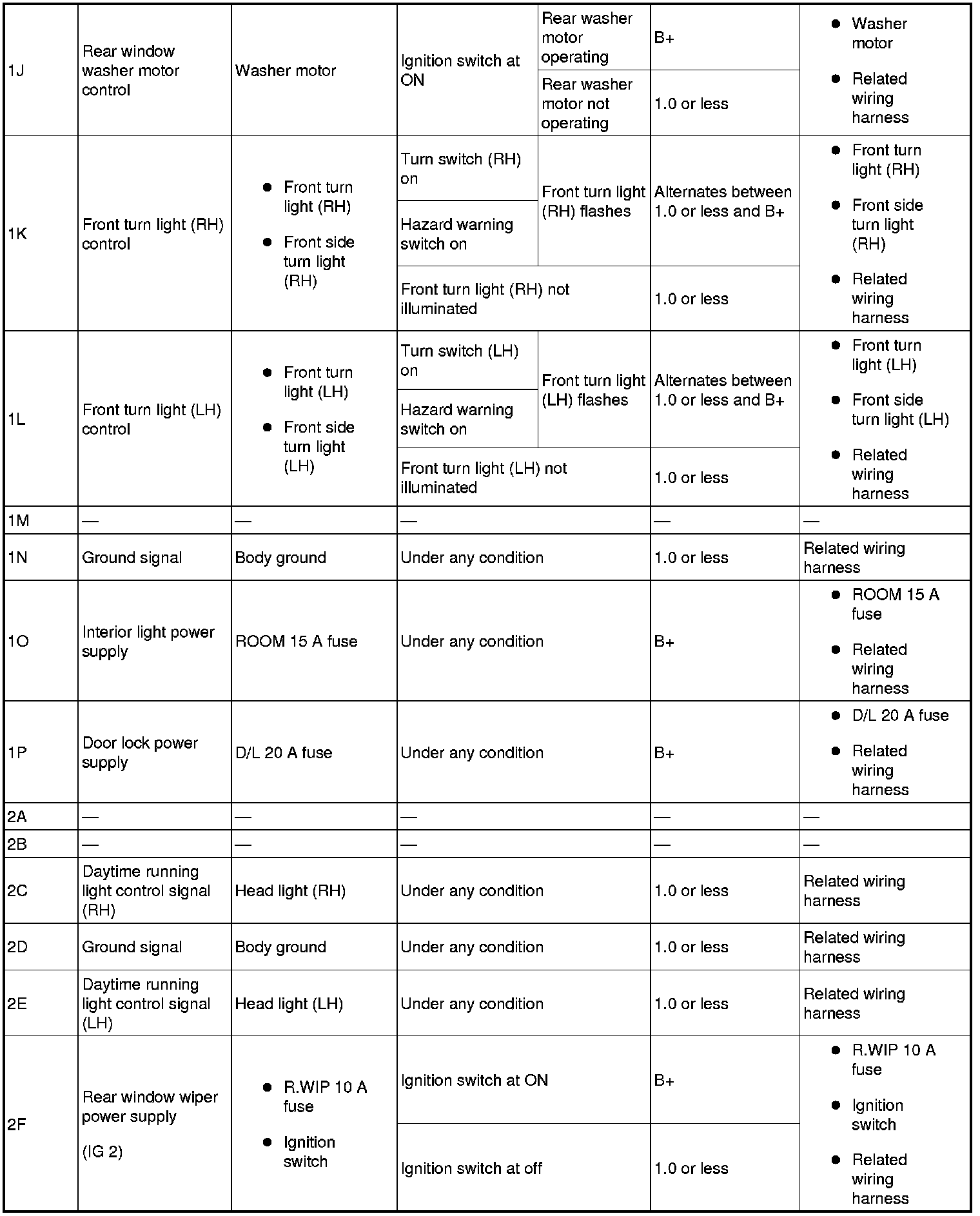 - Turn switch input (LH): 6B (+) -> body ground (-)
