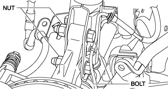 3. Remove the bolts and nuts shown in the figure, then disconnect the steering knuckle from the shock absorber.