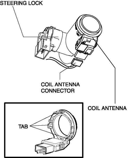 4. Detach the coil antenna hooks and remove the coil antenna from the steering lock.