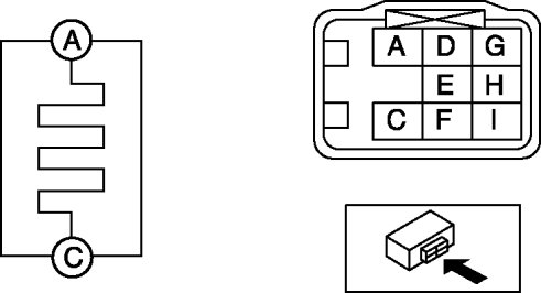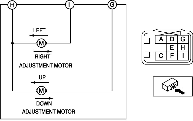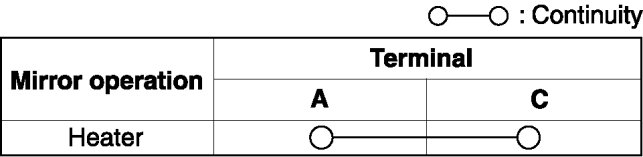 - If not as indicated in the table, or if the resistance is not within the specification, replace the power outer mirror.