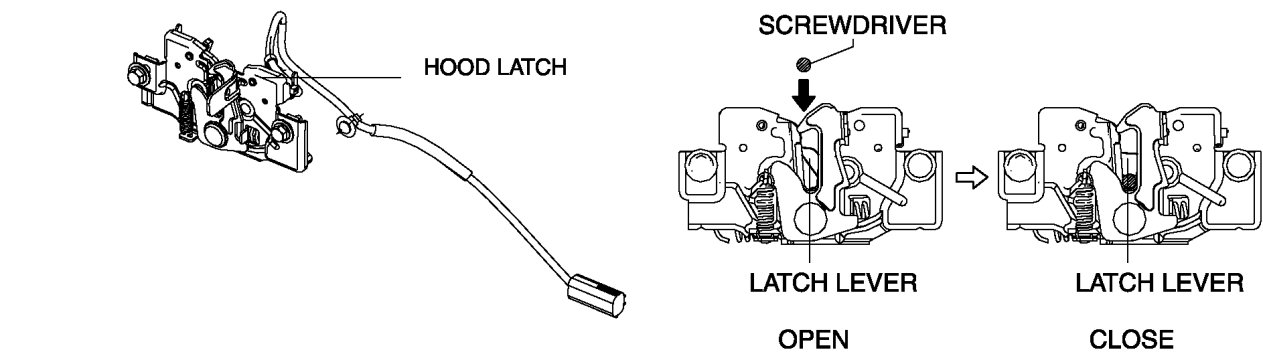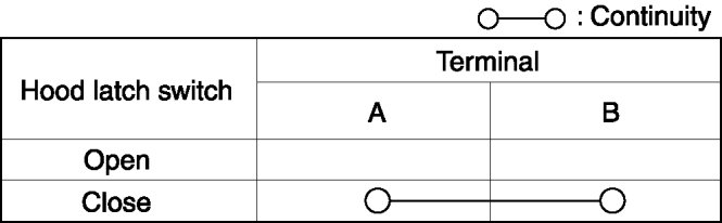 - If not as indicated in the table, replace the hood latch.