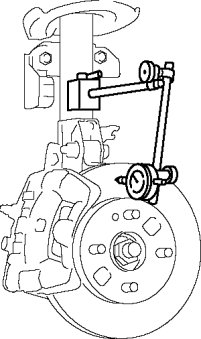 2. After tightening all the hub nuts to the same torque, put the dial gauge on the friction surface of the disc plate 10 mm {0.39 in} from the disc plate edge.