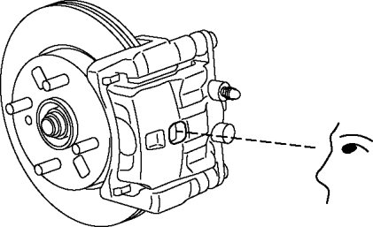4. Replace the pads as a set (right and left wheels) if either one is at or less than the minimum thickness.