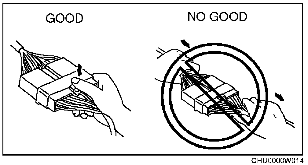 - When disconnecting connector, grasp the connectors, not the wires.