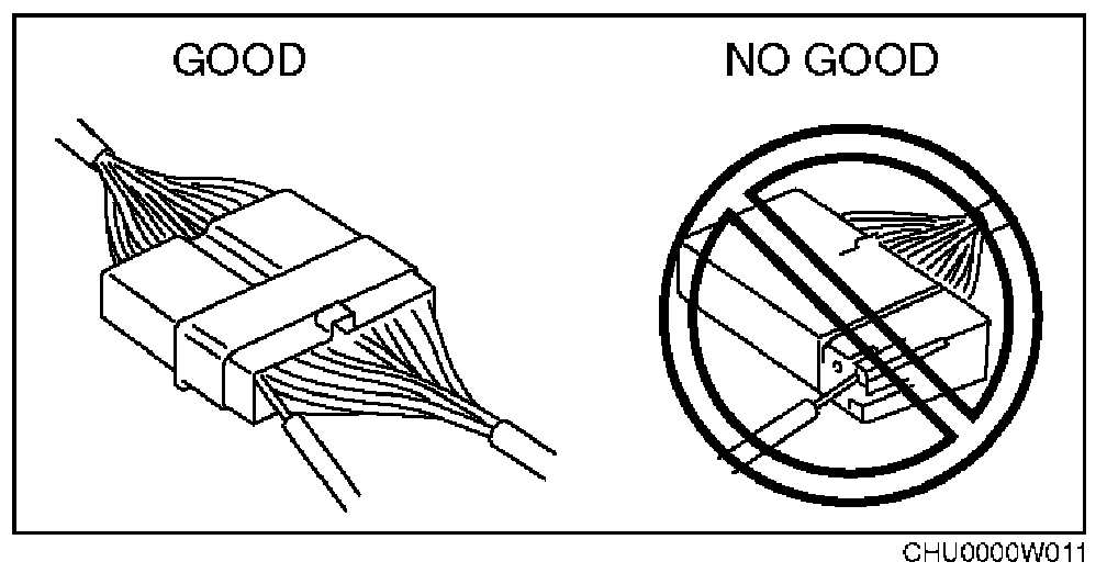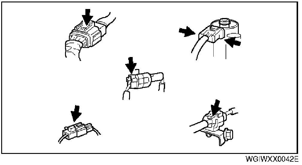 - Inspect the terminals of waterproof connectors from the connector side since they cannot be accessed from the wiring harness side.