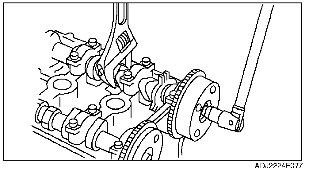 1. Hold the camshaft using a suitable wrench on the cast hexagon as shown in the figure.