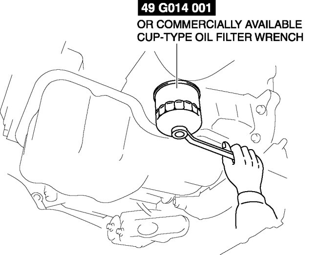 1. Remove the oil filter using the SST or commercially available, cup-type oil filter wrench (67 mm {2.6 in} diameter, 14 sided).