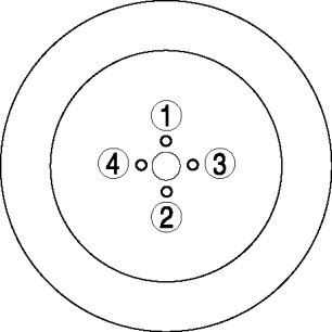 1. When installing the wheels and tires, tighten the wheel nuts in a criss-cross pattern to the following tightening torque.