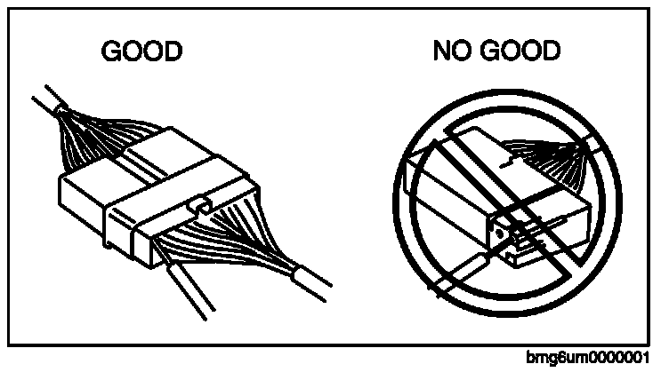 - Inspect the terminals of waterproof connectors from the connector side since they cannot be accessed from the wiring harness side.