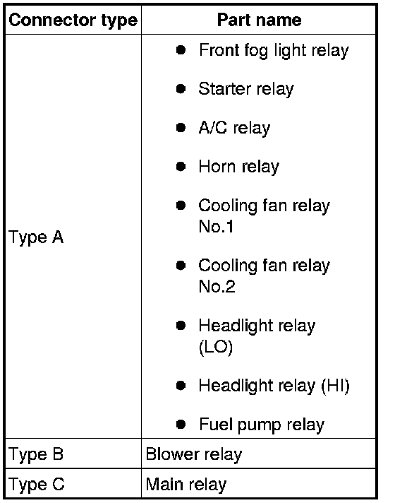 - If not as indicated in the table, replace the relay.
