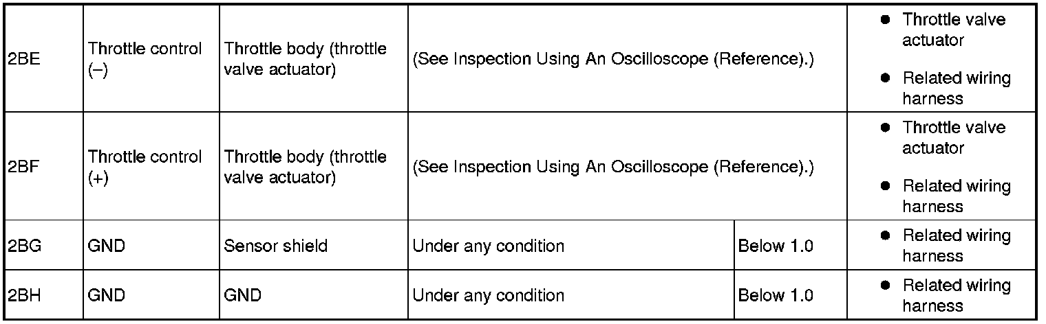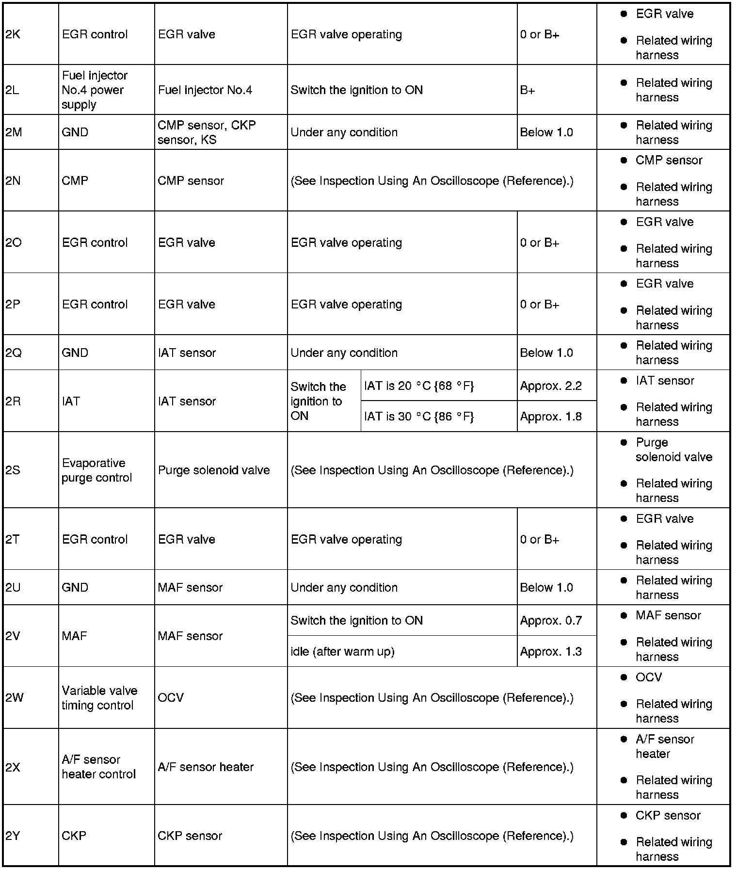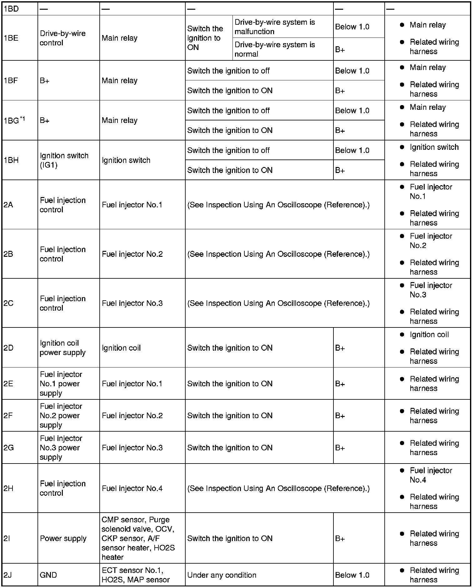 - Fuel injector No.1: 2A (+)-Negative battery terminal (-)