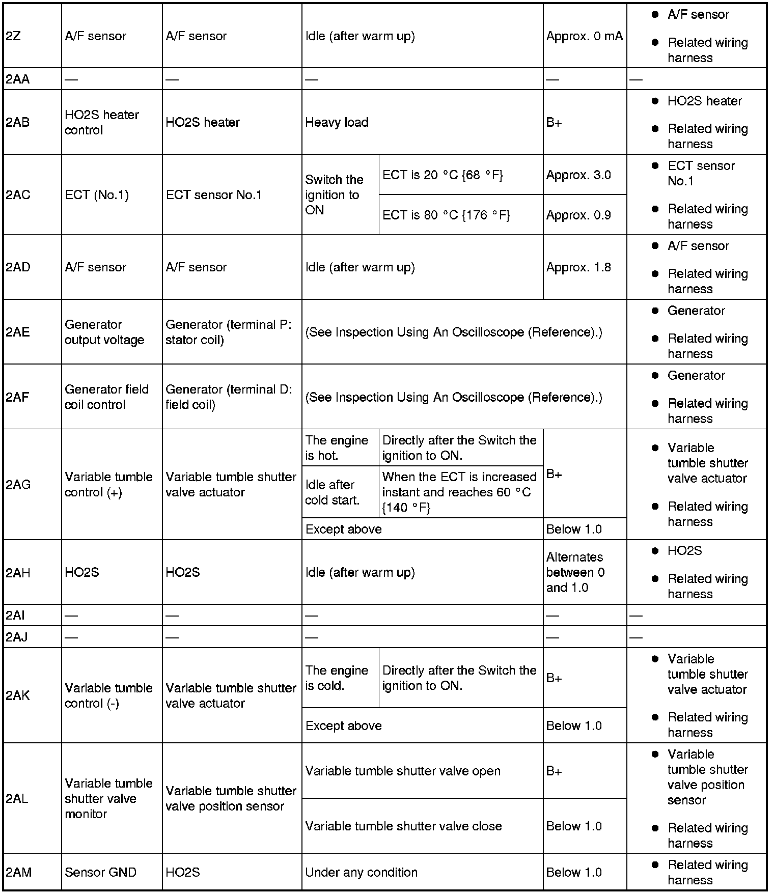 - The PCM terminal voltages vary with change in measuring conditions and vehicle conditions. Always carry out a total inspection of the input systems, output systems, and PCM to determine the cause of trouble. Otherwise, a wrong diagnosis will be made.