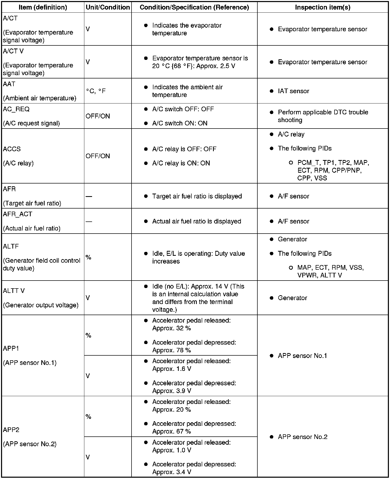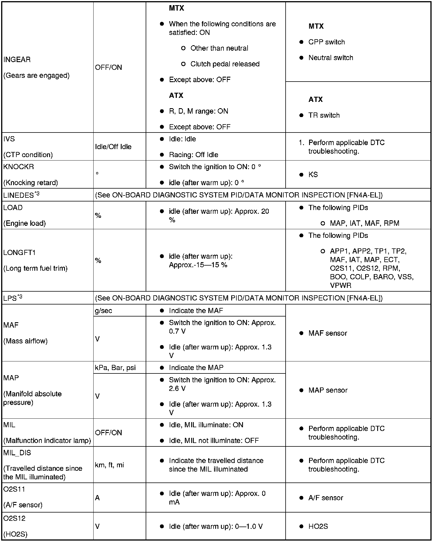 - The PID/DATA MONITOR function monitors the calculated value of the input/output signals in the PCM. Therefore, an output device malfunction is not directly indicated as a malfunction of the monitored value for the output device. If a monitored value of an output device is out of specification, inspect the monitored value of the input device related to the output control.