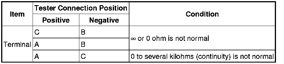 4. Measure the resistance between each terminal on the ignition coil connector using an analog circuit tester.