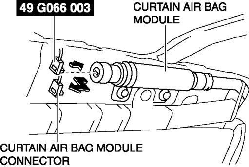 2. Disconnect the curtain air bag module connector.