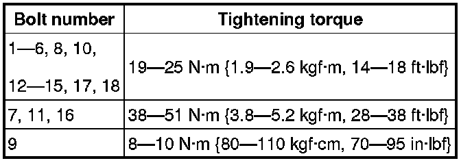 Tighten the engine front cover installation bolts in the order shown in the figure.