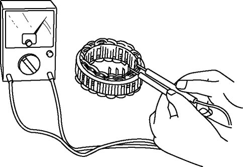 2. Verify that there is no continuity between the stator coil leads and core using a tester.