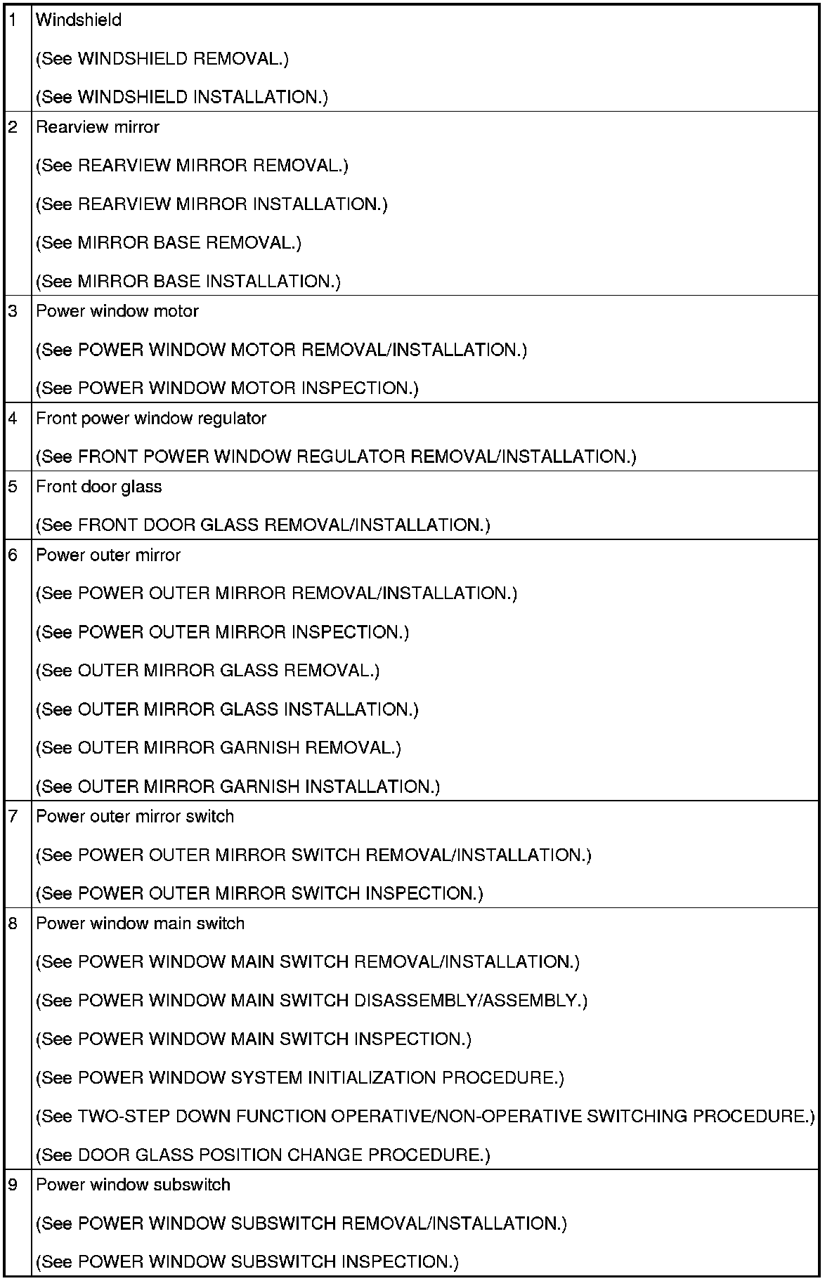 GLASS/WINDOWS/MIRRORS LOCATION INDEX