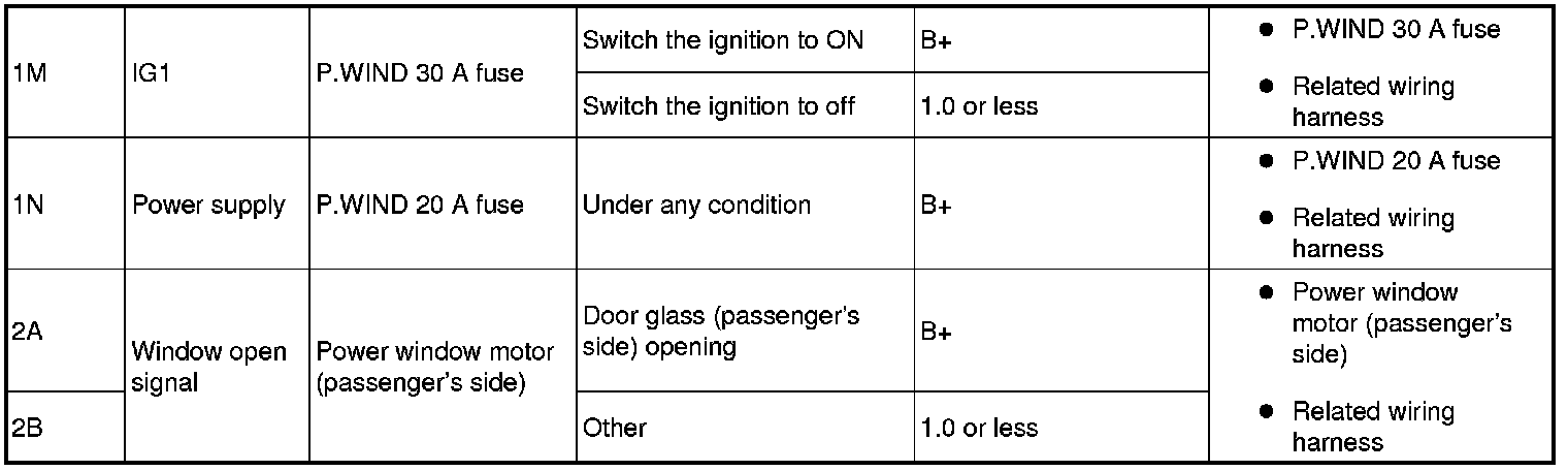 - If the door glass (driver's side) cannot be operated forapprox. 43 s after the after the ignition switched to off, of if the door glass (driver's side) can still be operated afterapprox. 43 s, replace the power window main switch.