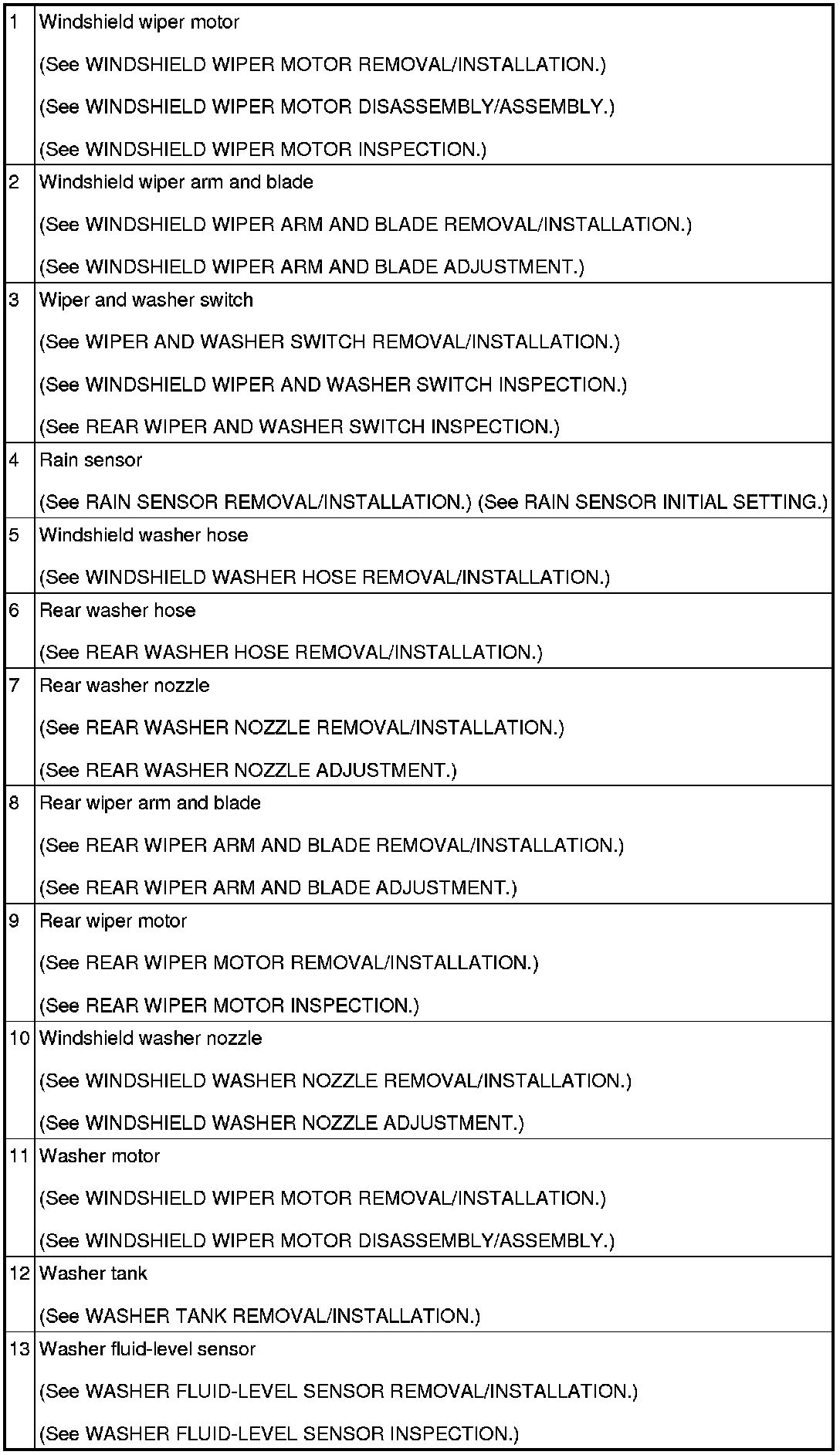 WIPER/WASHER SYSTEM LOCATION INDEX