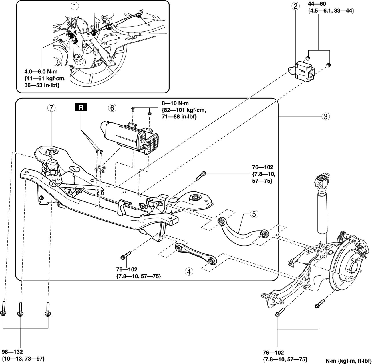 6. Remove the rear stabilizer. Rear Suspension - Stabilizer Removal/Installation