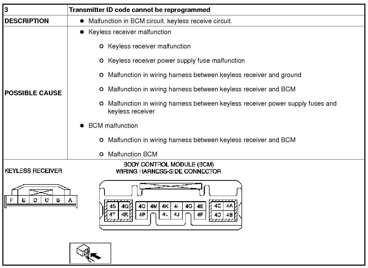 NO.3 TRANSMITTER ID CODE CANNOT BE REPROGRAMMED [KEYLESS ENTRY SYSTEM]