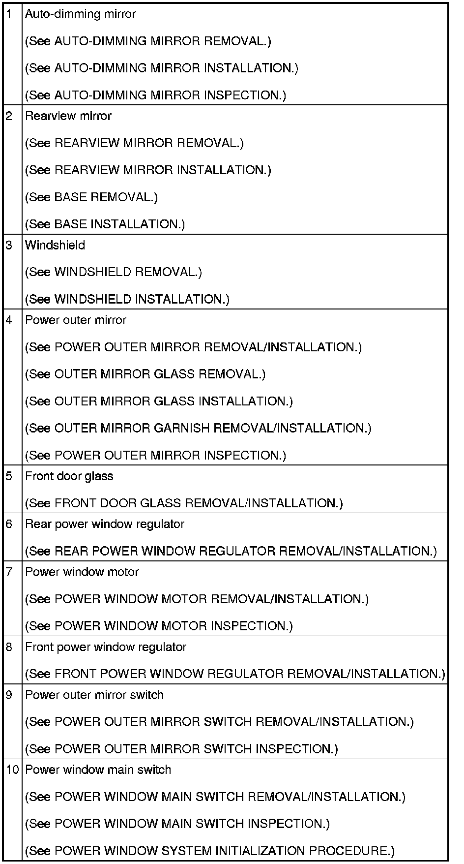 GLASS/WINDOWS/MIRRORS LOCATION INDEX