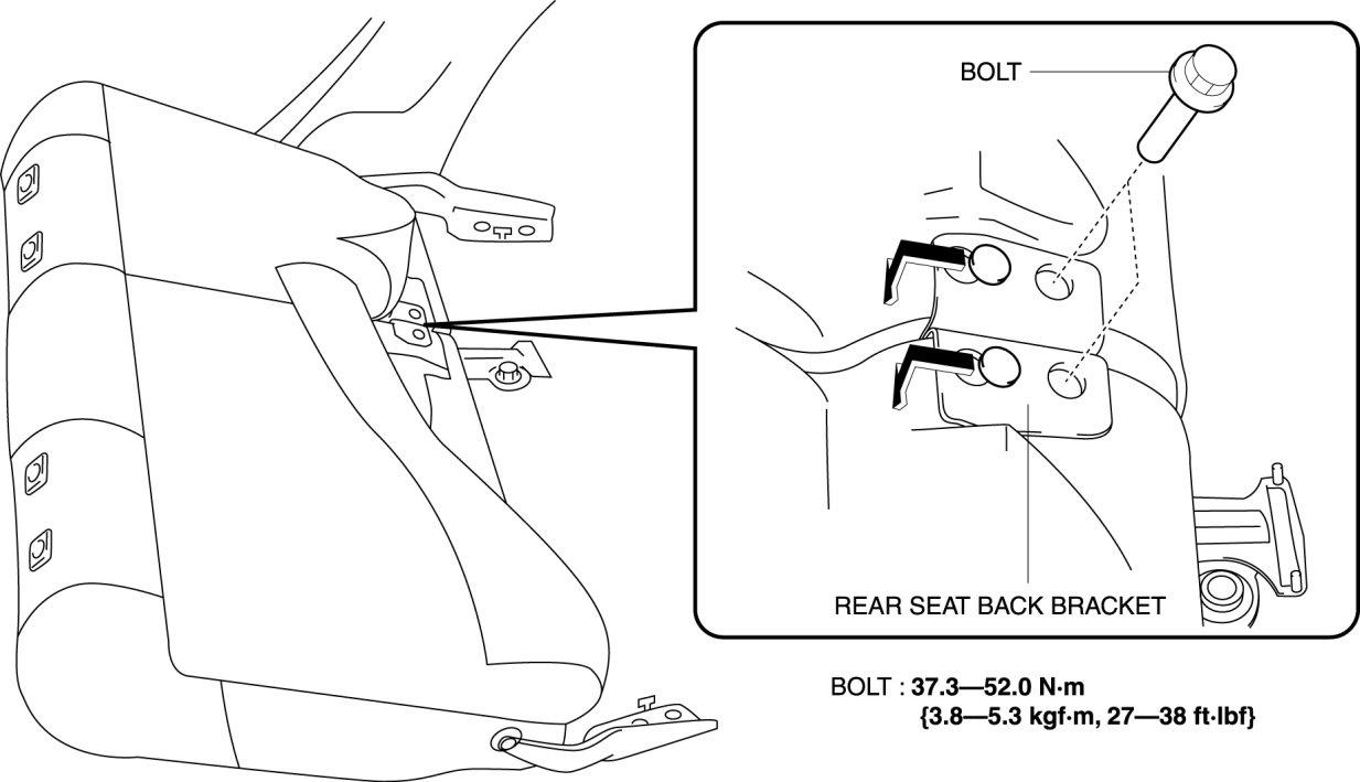 2. Remove the rear buckle installation bolt. Rear Buckle Removal/Installation