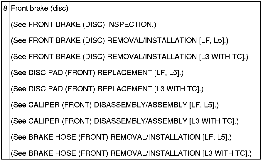 CONVENTIONAL BRAKE SYSTEM LOCATION INDEX