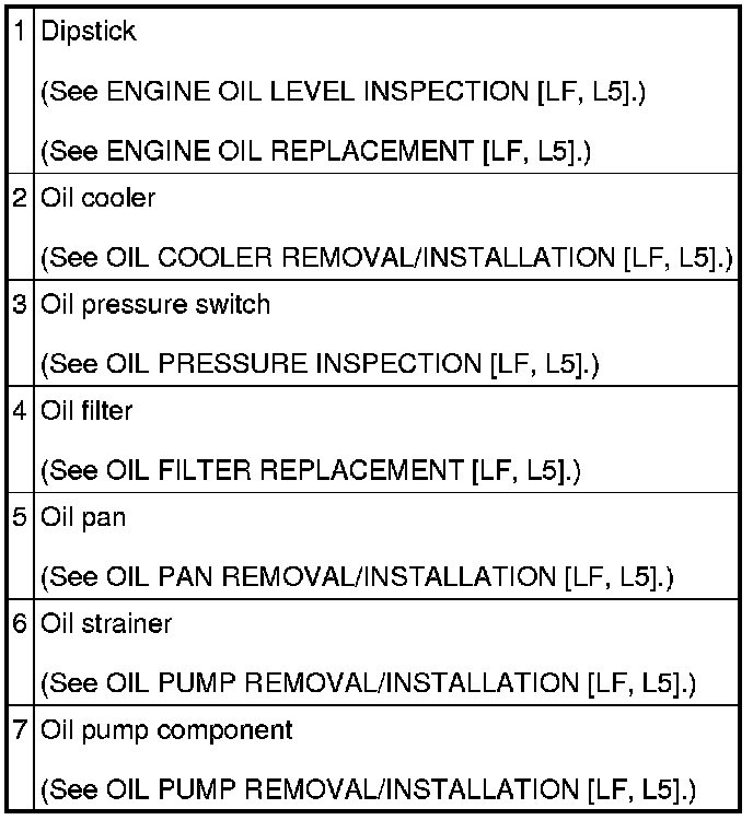 LUBRICATION SYSTEM LOCATION INDEX [LF, L5]