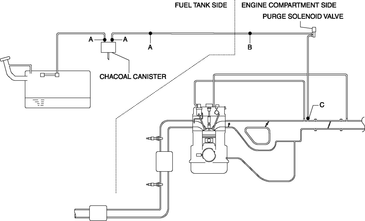 1. Inspect the evaporative hose and evaporative pipe sealing surface for damage and deformation.