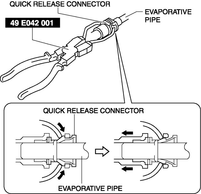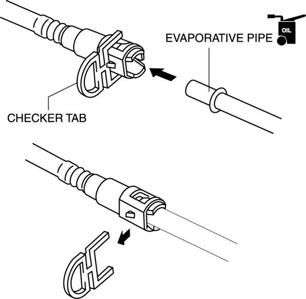 - A checker tab is integrated with the quick release connector for new evaporative hoses. Remove the checker tab from the quick release connector after the connector is completely engaged with the evaporative pipe.