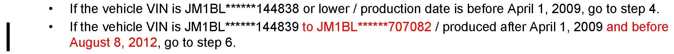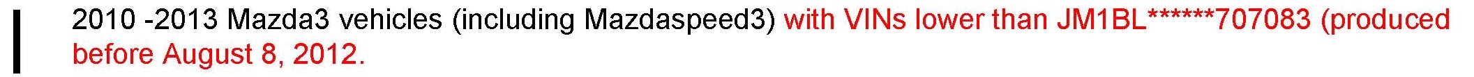 ^ This repair will be covered under Mazda's New Vehicle Limited Warranty term. Additional diagnostic time cannot be claimed for this repair.
