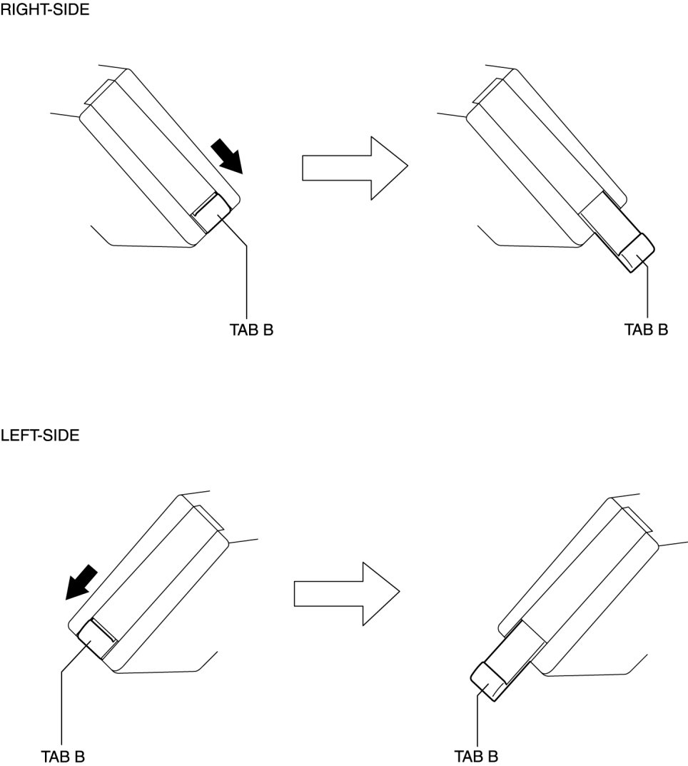 4. Slide the tab B in the direction of the arrow and remove the rain sensor while supporting it with the hand.