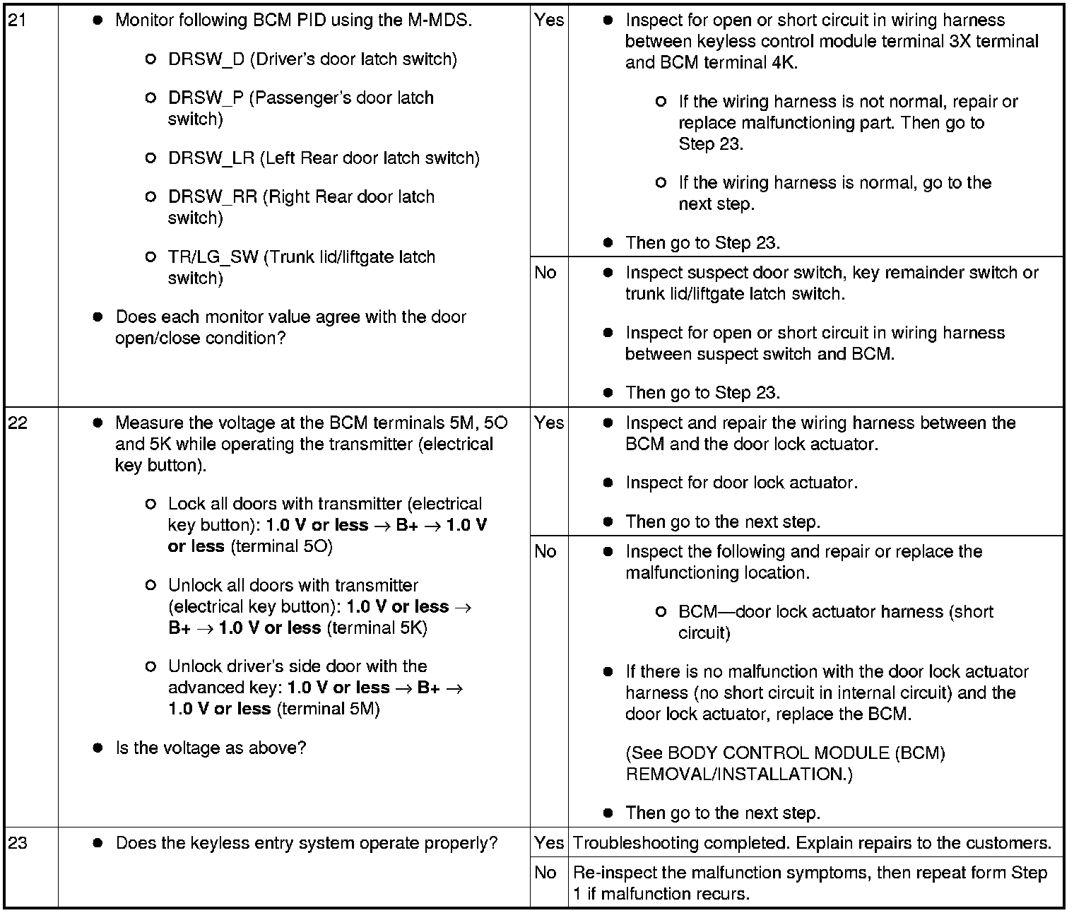 NO.1 DOOR CANNOT BE LOCKED/UNLOCKED BY ADVANCED KEY [ADVANCED KEYLESS ENTRY AND PUSH BUTTON START SYSTEM]