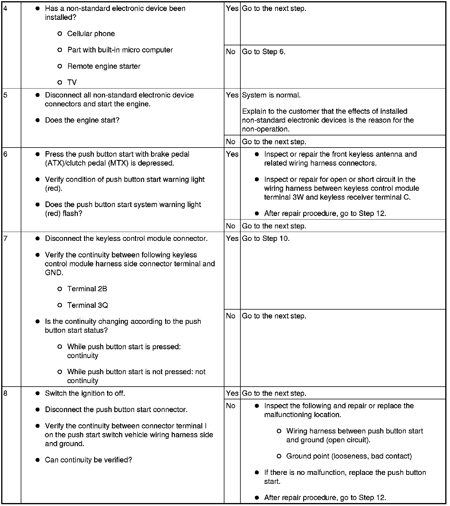 No. 3 Push Button Start System Does Not Operate