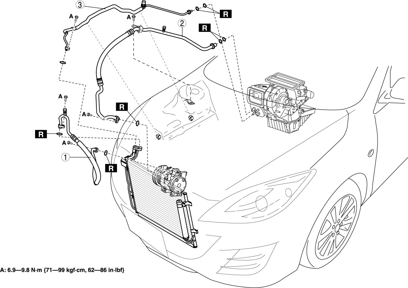 7. Remove in the order indicated in the table. Do not allow compressor oil to spill.
