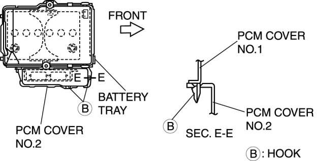 2. Install the PCM cover No.1 to the PCM cover No.2 hook.