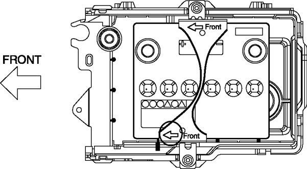 1. Assemble the battery clamp so that the arrow on it is pointed toward the front of the vehicle.