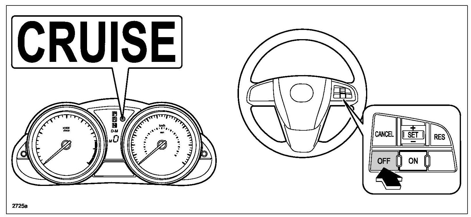 Some vehicles may experience an occassional and unexpected illumination of the cruise main indicator light (amber) with the ignition key operation cycle of OFF-START-ON. It can be cancelled by the operation of either auto cruise switch or the ignition key operation cycle of OFF-START-ON.