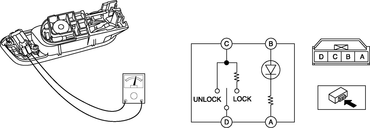5. Inspect for continuity between the door lock switch terminals using an ohmmeter.